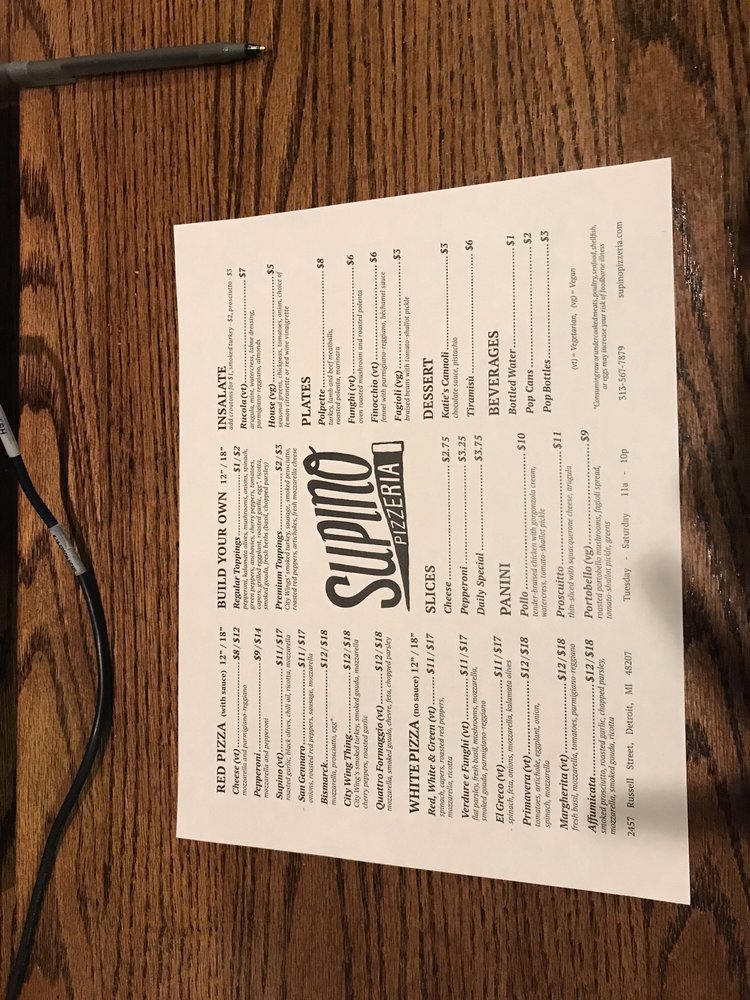 Introducing Supino Pizzeria, a gem in Detroit's Eastern Market offering the best thin-crust pizzas in town. Known for their fresh, high-quality ingredients and East Coast style, Supino Pizzeria has received rave reviews from customers. The menu features a variety of options, including vegan and vegetarian choices, making it a perfect spot for everyone. The ambiance is laid-back yet upscale, with a cool vibe and attentive service. Customers praise the delicious pizzas, such as the Funghi and Smokey, noting the perfect balance of crispy and soft crust. The meatballs and homemade mocktails are also standout favorites. With quick servers, reasonable prices, and a top-notch dining experience, Supino Pizzeria is a must-visit for pizza lovers in Detroit.